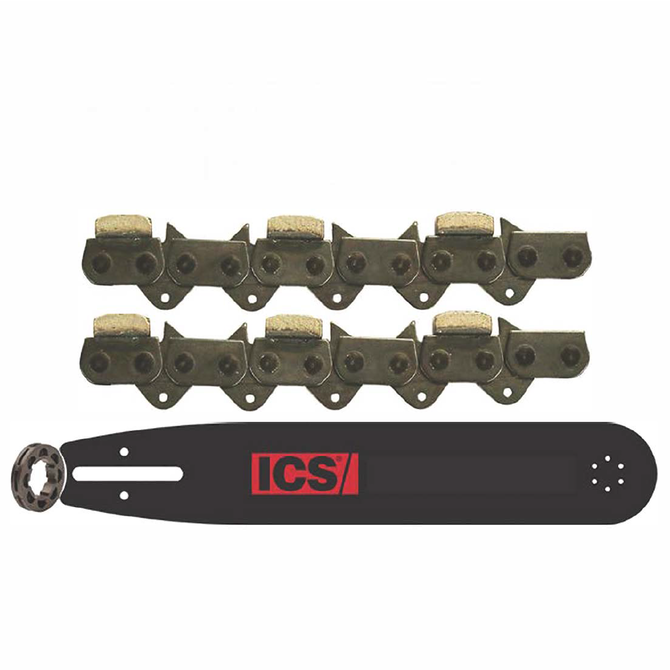 SAVE with the ICS FORCE3 Brick chain & guide bar combo pack. Includes 2 chains + 1 guide bar + 1 drive sprocket. Designed for daily use on natural stone, brick, & block up to 10" deep. Fits ICS 613GC, 680ES, 680GC, & 536E saws. SHIPS FREE TO MOST U.S.