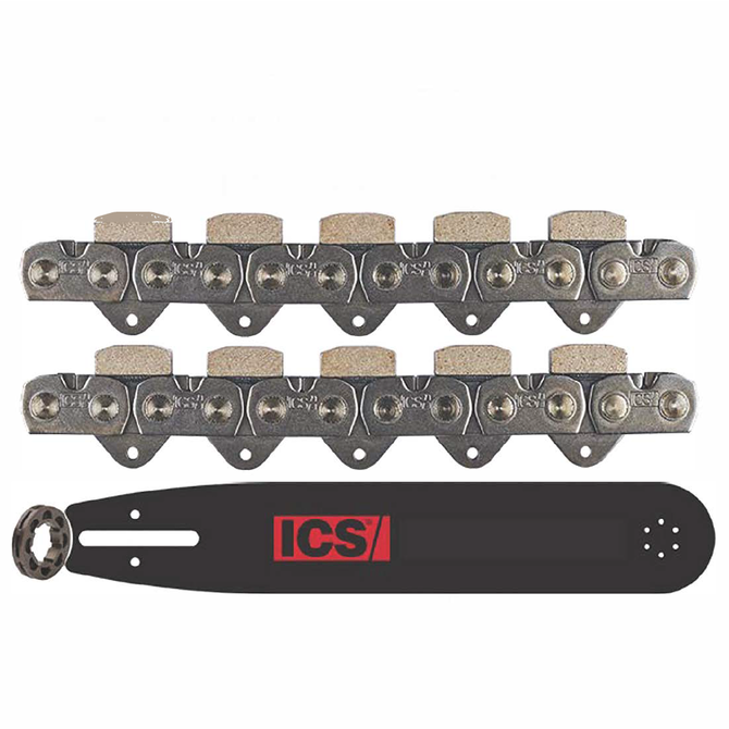 The new ICS Force3 Speedster chain cuts 30% faster than standard ICS chains. New rivet design for less stretch and smooth cutting. 10-inch cutting depth.