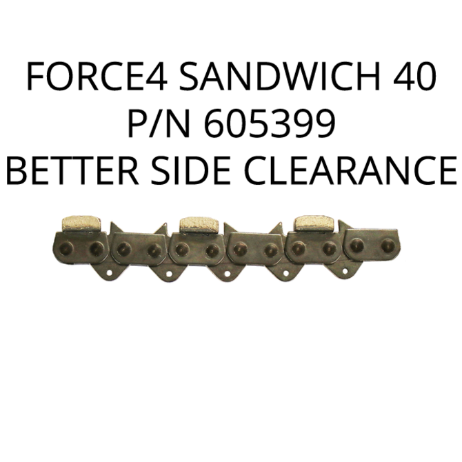 Improved Cut Straightness and Longer Side Clearance with the FORCE4-40 Sandwich Segment 25" Chain.